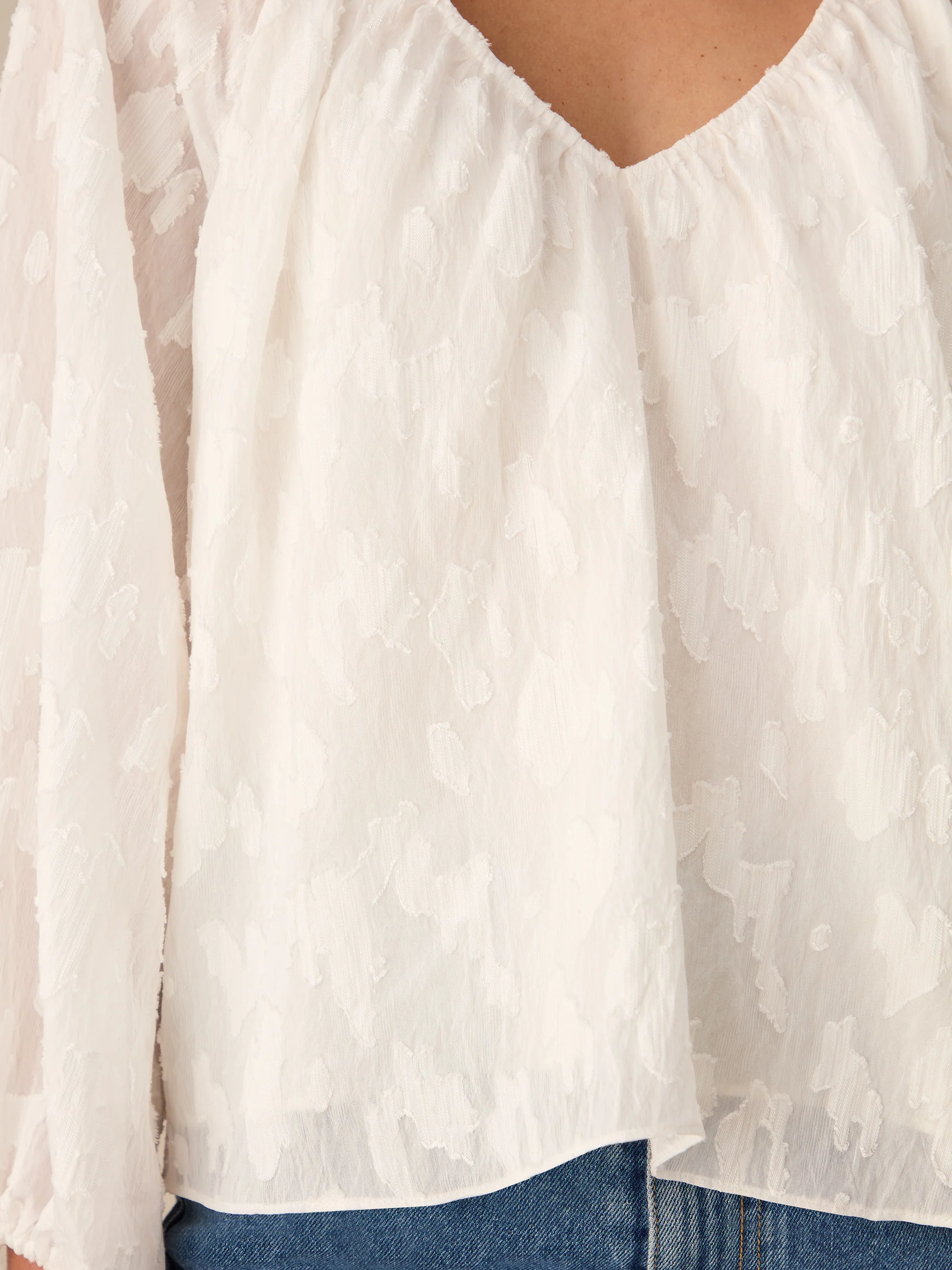 Ivory Leopard Jacquard Blouson Sleeve Blouse